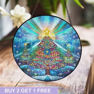 Festive Stained Glass Christmas Tree Suncatcher – Vibrant Holiday Decor