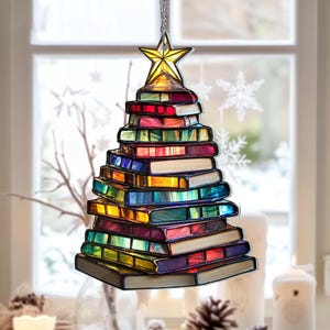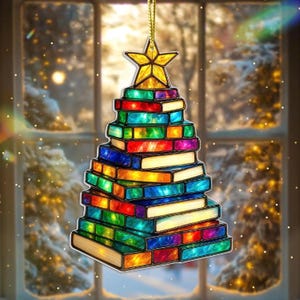 Christmas Book Tree Suncatcher ACRYLIC Ornament , Book Lover Gift, Christmas Tree Bookish Gift, Librarian Gift, Book Club Ornament