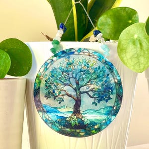 Handmade Tree of Life Stained Glass Window Hanging: Nature Decor