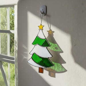 Christmas Tree Stained Glass Suncatcher – Handmade Window Ornament, Gift for Her & Host, Christmas Winter Holiday Home Decor